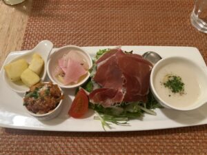 サラダに生ハムもついてるし。