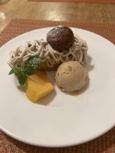 最後にマロンタルトとアイスティーで